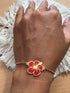 Pulsera ajustable de acero inoxidable dorada con la flor de PR en esmalte "Flor de Maga" de la colección Puerto Rico.