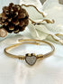LUXE SS WIRE BANGLE - DELICATE PAVE CRYSTALS HEART (GOLD)