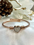 Luxe Staineless Steel Wire Bangle - Delicate Pave Crystals Heart - Rose Gold